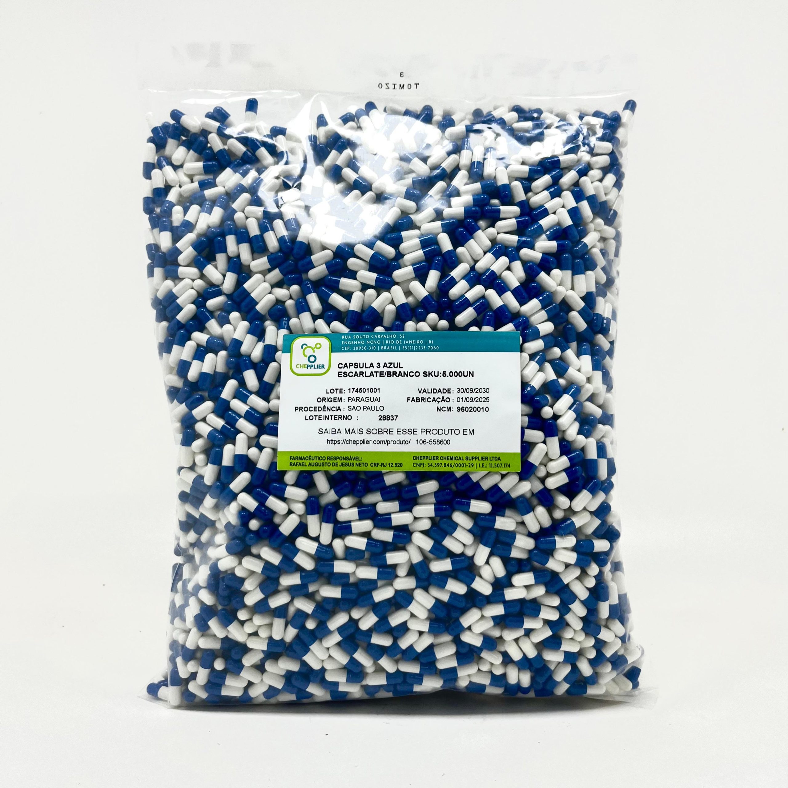 A Cápsula 3 Azul Escuro/Branco refere-se a uma cápsula vazia de gelatina dura ou HPMC (hidroxipropilmetilcelulose, para opções vegetarianas/veganas), de tamanho padronizado número 3. Suas metades são de cores distintas: uma em azul escuro (tampa) e a outra em branco (corpo, ou vice-versa). Essas cápsulas são utilizadas para encapsular formulações magistrais, suplementos alimentares, vitaminas ou outros ingredientes ativos em pó ou granulados para administração oral.