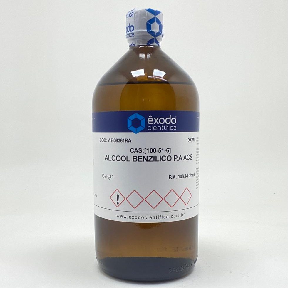 O Álcool Benzílico (também conhecido como Benzil Álcool ou Fenilmetanol) é um álcool aromático incolor e de odor agradável, que se destaca por suas propriedades como solvente, conservante e, em certas aplicações, como anestésico local. A designação P.A. (Para Análise), juntamente com a conformidade com os padrões da ACS (American Chemical Society), e a pureza mínima de 99%, garantem um produto de altíssima qualidade. Este grau de pureza é essencial para aplicações em laboratórios de pesquisa, análises rigorosas, desenvolvimento farmacêutico e formulações cosméticas onde a consistência e a ausência de impurezas são críticas.
