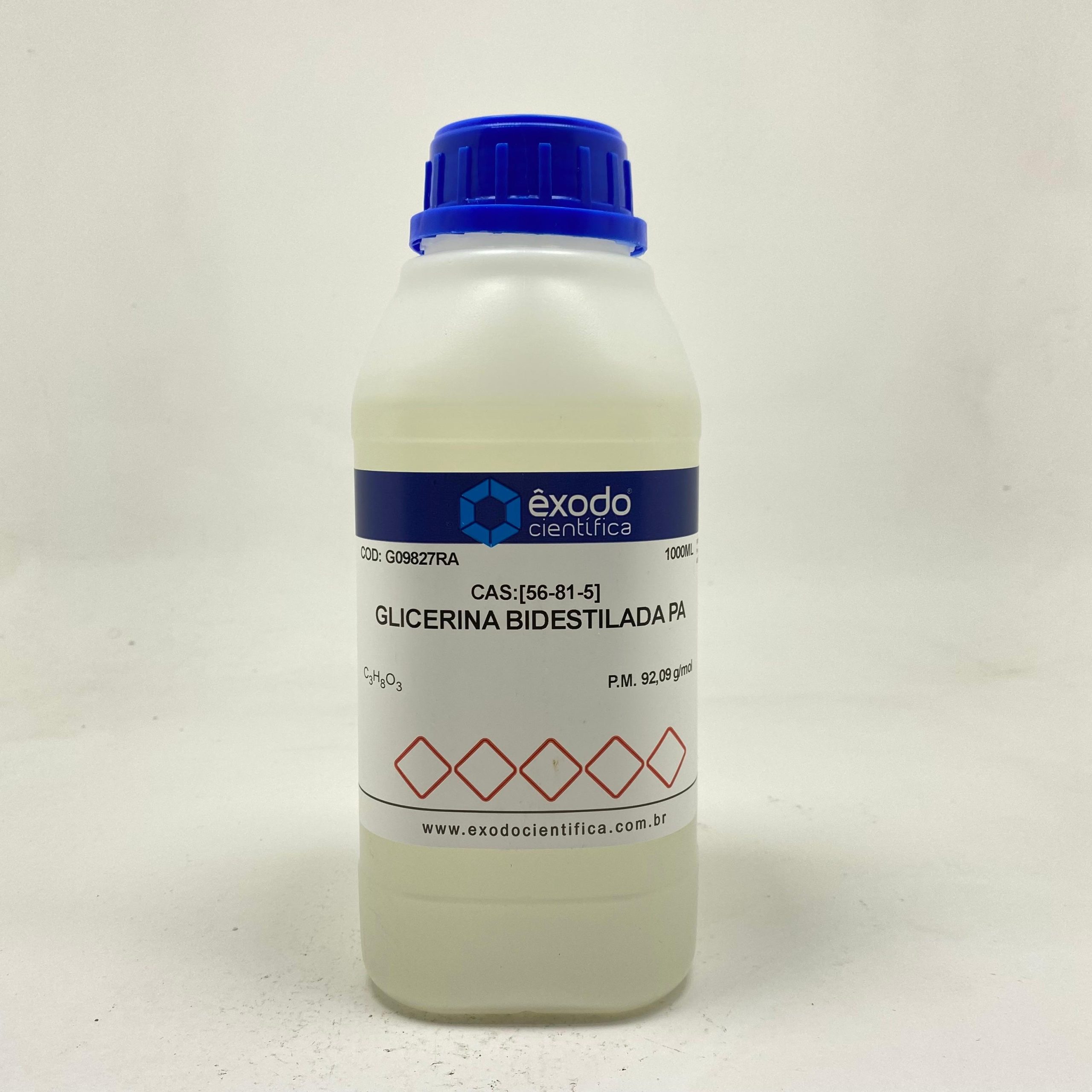 A Glicerina, quimicamente conhecida como glicerol ou propanotriol, é um triálcool incolor, inodoro, viscoso, de sabor adocicado e não tóxico. É um composto orgânico fundamental, presente naturalmente em todas as gorduras e óleos animais e vegetais, sendo um subproduto comum da fabricação de sabão ou do biodiesel. A designação Bidestilada indica que o produto passou por um processo de dupla destilação, garantindo um nível de pureza ainda mais elevado. A especificação P.A. (Para Análise), com uma pureza mínima de 99%, assegura que este é um produto de qualidade superior, indispensável para aplicações que exigem especificações rigorosas, como em laboratórios, indústrias farmacêuticas, cosméticas e alimentícias, onde a presença de impurezas pode comprometer a eficácia e a segurança do produto final.